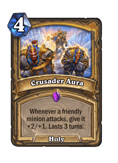 This card literally can end game if you have a board. Plus 2 attack for each creature is amazing. If you can play with perfect mana curve (first three turn play creatures and four (and last turn i guess) turn play this aura) this game will end as soon as possible. And also you can tutor with Trinket Artist [Trinket Artist – Hearthstone Card Library – Hearthstone].