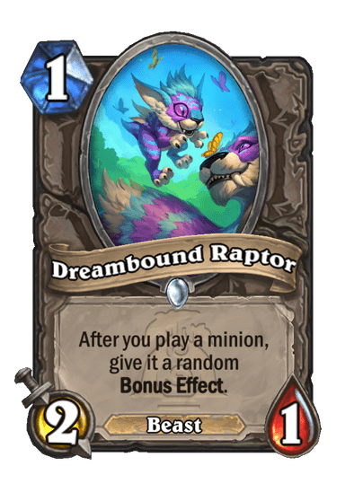 Dreambound Raptor is very aggressive but also vulnerable card. If you can play this card in turn 1 and your opponent couldn’t destroy it, you will gain so much tempo (if you have you can play 2 minions but it is not difficult for this deck).